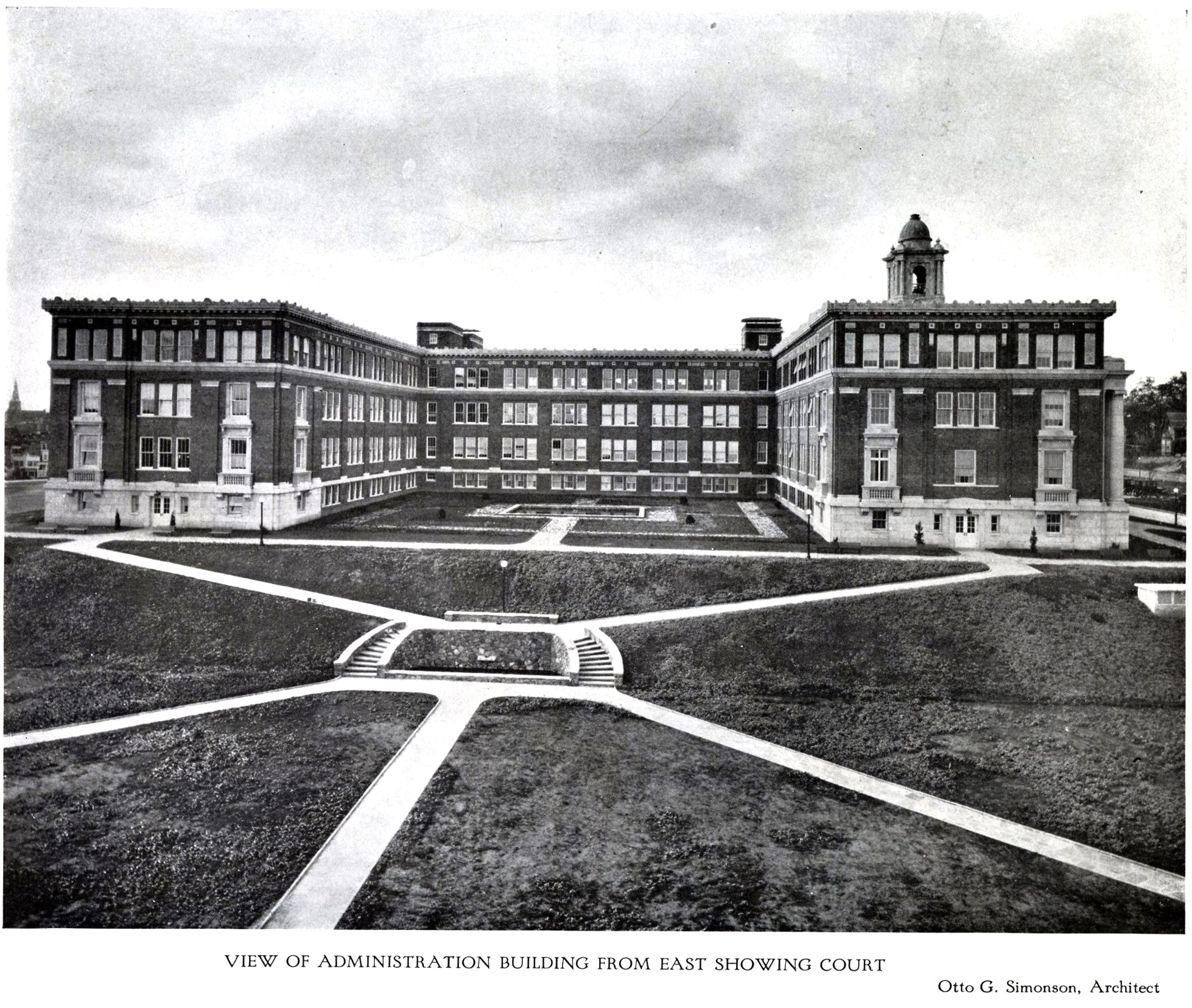 It was one of only two projects that the Olmsted Brothers landscape architecture firm designed in Maryland as the grounds for Commercial & Industrial buildings. What the Olmsted Brother’s master planned for the Maryland Casualty Company in the early 1920s was quite impressive – an extensive business campus of twenty-five acres, situated in a landscaped park with winding footpaths, recreational fields, tennis courts, and a coy pond. Prominently featured was the iconic 4-story administrative building designed by architect Otto G. Simonson in 1921, with its distinct bell and clock tower that serves as a landmark for the community today.